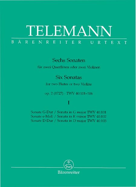 Telemann 6 Sonatas, Op. 2, for 2 Flutes (or Violins), Vol. 1: Sonatas No. 1 in G major, 2 in E minor, 3 in D major, TWV 40:101-103 (Playing Score)