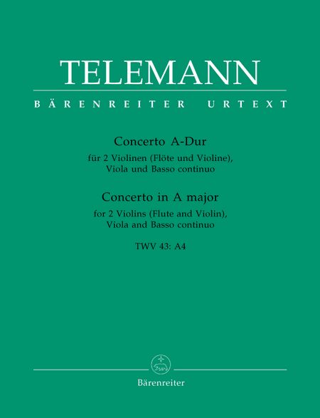 Telemann Concerto in A Major, TWV 43:d2, for 2 Violins (Flute & Violin), Viola, & B.C. (Score & Parts)
