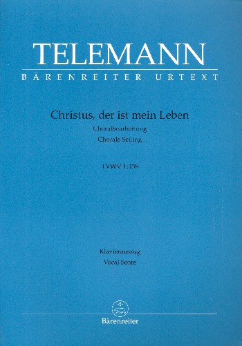 Telemann Christus, der is mein Lebe [Chorale Setting], TWV 1:138, for Soloists, Choir, and Orchestra. Urtext Edition by Ute Poetzsch. Vocal Score.