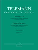 Telemann Quartet in G Major ("Tafelmusik"), TWV 43:G2, for Flute, Oboe, Violin, Cello, & B.C., Score & Parts