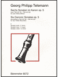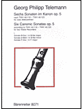 Telemann Six (6) Canonic Sonatas after TWV 40:118-123, Op. 5, Vol. 1, for Two Recorders. Sonatas in B-Flat Major, B Minor, F Major