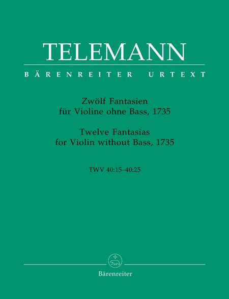 Telemann Twelve (12) Fantasias for Violin Without Bass (Unaccompanied), 1735, TWV 40:14-25. Urtext Edition by Gunter Hausswald.