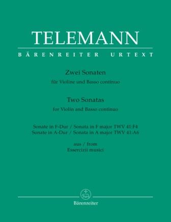 Telemann Two (2) Sonatas for Violin & Basso Continuo: F Major, TWV 41:F4 & A Major, TWV 41:A6 (from Essercizii musici). Urtext Edition by Klaus Hofmann.