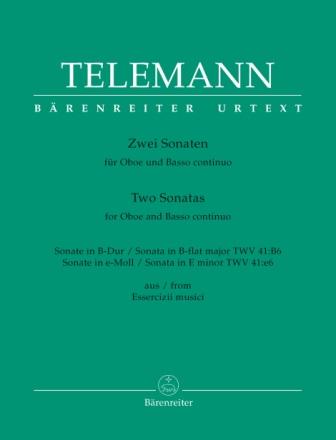 Telemann Two (2) Sonatas for Oboe & Basso Continuo: B-Flat Major, TWV 41:B6 & E Minor, TWV 41:e6 (from Essercizii musici). Urtext Edition by Klaus Hofmann.