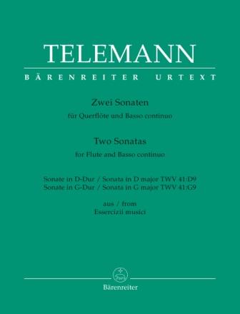 Telemann Two (2) Sonatas for Flute & Basso Continuo: D Major, TWV 41:D9 & G Major, TWV 41:G9 (from Essercizii musici). Urtext Edition by Klaus Hofmann.