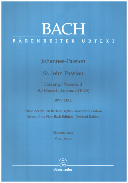 Bach Johannes Passion (St. John Passion), BWV 245.2. Version II, "O Mensch, bewein" [1725]. Revised Urtext Edition. Vocal Score