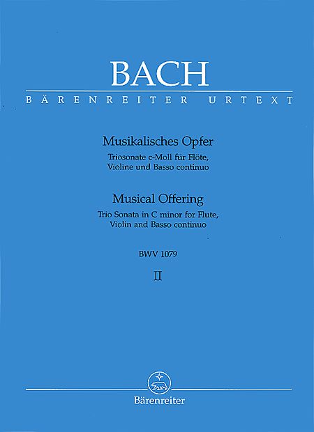 Bach Musical Offering, BWV 1079, Book 2: Trio Sonata in C Minor for Flute, Violin, & Basso Continuo. Urtext Edition by Christoph Wolff. Playing Score & Parts