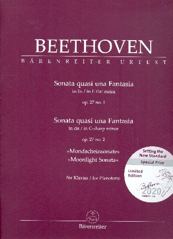 Beethoven Sonata quasi una Fantasia in E-Elat Major, Op. 27, No. 1, & Sonata quasi una Fantasia in C-Sharp Minor, Op. 27, No. 2 ("Moonlight"). Urtext Edition.