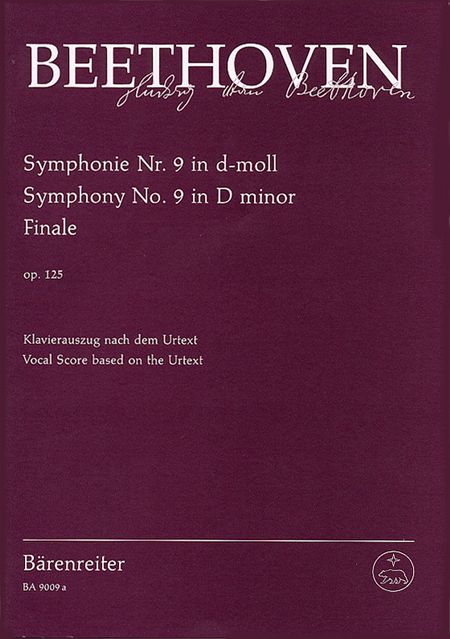 Beethoven Symphony No. 9 in D Minor, Op. 125 (with Final Chorus "An die Freude"). for Solists, Choir, & Orchestra. Urtext Ed. by Jonathan del Mar. Vocal Score